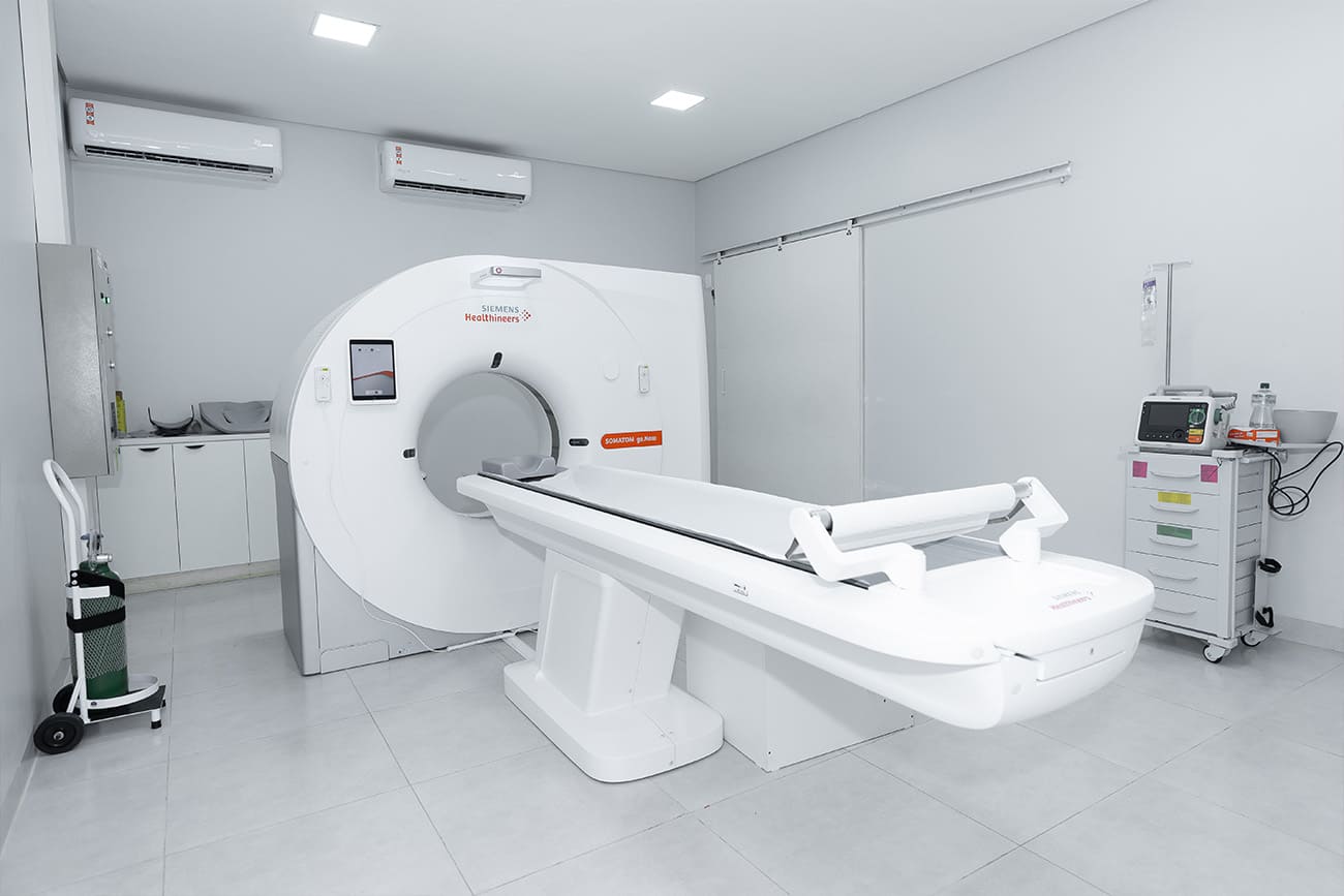 Nosso tomógrafo Siemens SOMATOM go.Now representa o que há de mais moderno em diagnóstico por imagem. Com tecnologia alemã de ponta, garantimos exames com menor dose de radiação e imagens de altíssima definição, essenciais para diagnósticos precisos e seguros.
